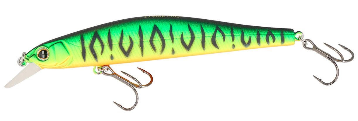 Воблер Strike Pro Inquisitor 110SF GC01S - класичний твічінговий воблер типу мінноу для лову щуки. По типу - повільно спливаючий, при проводці здатний заглиблюватися до 0.5м. Завдяки магнітній системі далекого закидання воблер добре летить. Також варто відзначити наявність дуже гострих гачків.